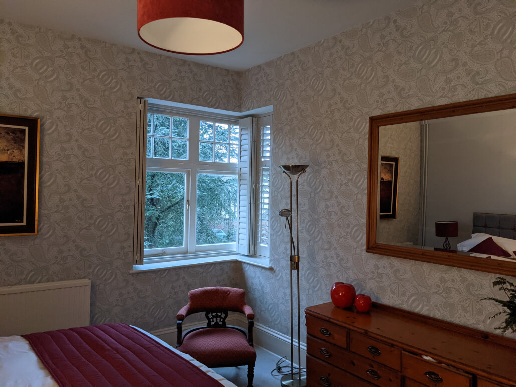 The walls were painted in Farrow & Ball Dimpse. With the woodwork and ceiling in Zoffany Mist. All of my redecoration work was carried out by K G Ell Redecoration Ltd.
